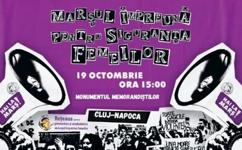 Clujenii sunt invitați pe 19 octombrie, de la ora 15:00, în fața Monumentului Memorandiștilor, la marșul „Împreună pentru Siguranța Femeilor”, organizat pentru a presa autoritățile să îmbunătățească legislația împotriva violenței de gen și femicidelor, care au marcat numeroase tragedii în ultimul an.