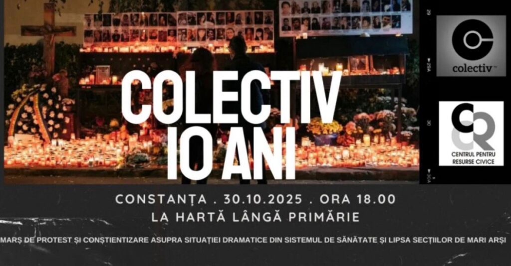 Joi, 30 octombrie 2025, de la ora 18:00 are loc la Constanţa un marş comemorativ organizat în memoria victimelor tragediei de la Colectiv. Evenimentul porneşte de la „Harta Mozaic” din Parcul Arheologic (Bd. Ferdinand) şi traversează străzile Răscoala din 1907, Ştefan cel Mare, Atelierelor, Bucureşti, 1 Decembrie 1918, Casa de Cultură, Tomis-Platoul Prefecturii, până la punctul de pornire. Organizatorii solicită tragerea la răspundere a tuturor celor implicaţi şi implementarea de reforme reale în sistemul sanitar.