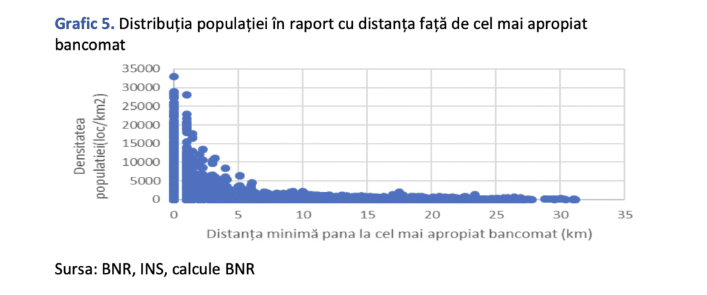 Potrivit unui raport al BNR efectuat în 2024, doar 525 din cele 2.501 de localități cu mai puțin de 5.000 de locuitori au bancomate, ceea ce înseamnă un grad de acoperire de doar 21%.