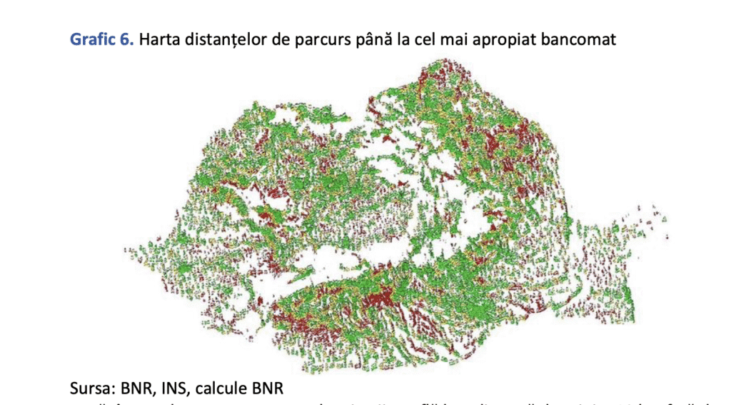 „În pofida unei bune reprezentări, se remarcă prezența unor concentrări de populație pentru care accesul la rețeaua de bancomate este mai dificil, în special în anumite zone din Moldova și o parte din regiunea de dezvoltare SV Oltenia și Sud Muntenia”, se arată în raportul BNR.