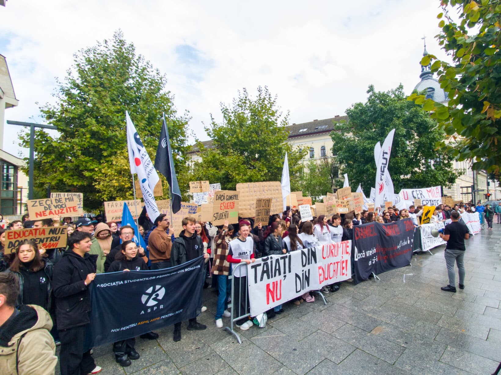 Sute de studenți au protestat luni, la Cluj-Napoca, în prima zi de facultate, împotriva măsurilor de austeritate ale Guvernului Bolojan, a tăierii burselor și a subfinanțării educației. Prezent la Universitatea Babeș-Bolyai, ministrul Educației, Daniel David, a promis soluții pentru anul viitor și a afirmat că România traversează „cea mai mare criză de după Revoluție”.
